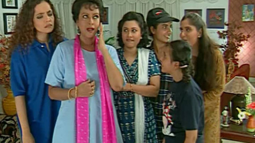 Hum Paanch is the story of a middle-class white-collar worker, Anand Mathur, who always finds himself in trouble because of his five daughters — Meenakshi, Radhika, Sweety, Kajal, and Chhoti. The three elder daughters are Anand and his first wife's children. The last two are Anand and Bina's daughters. To make matters worse, his first wife is deceased but "haunts" him by speaking to him through her large wall-mounted portrait—usually to nag him or offer sarcastic advice. Living in a chaotic household with his second wife, Bina, Anand tries to maintain order while his daughters hatch various schemes, leading to hilarious misunderstandings and situational comedy.