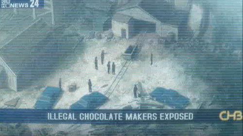 Chocolate is now illegal. The story takes place in present day, the Good for You Party has won the election and announced the amazing Chocolate Prohibition law. They prohibit all sweet things, including chocolates, because they are harmful to ones health. Two boys, Huntley and Smudger, stand up to fight against the law. With help from Louise and other friends, they begin to bootleg chocolate.
