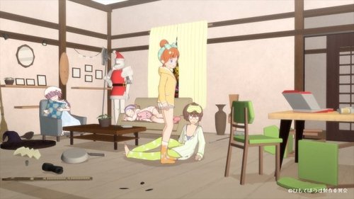 From Kotaro Ishidate, tthe creator of some popular ad-lib animes such as Tesagure! Bukatsu-mono and gdgd Fairies. This new anime centers on five girls and one cat all living as housemates in Nakano, Tokyo: the three Himote sisters (Tokiyo, Kinami, and Kokoro) whose family manages the "Himote House," Kokoro's classmates Tae and Minamo, and the cat Enishi. The girls live their daily lives trying to figure out ways to be popular, and they (and the cat) all possess a mysterious secret power...